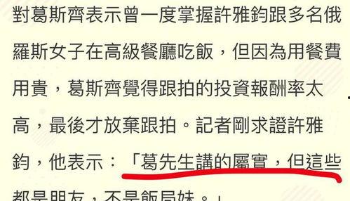 葛斯齐在爆料中提到,娱乐圈的潜规则远比我们想象的要复杂。他透露,很多明星为了上位,不得不付出巨大的代价。比如,有些明星为了获得导演的青睐,不得不在片场献上“特殊服务”。葛斯齐表示,这种现象在娱乐圈并不少见,但他自己坚决抵制这种行为。